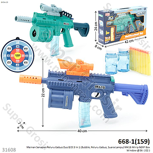 Senapan Peluru Gabus B/O 3 In 1 (Bubble, Peluru Gabus, Suara Lampu) M416 Box Window @36